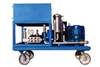 它以柴油機(jī)為動力驅(qū)動高壓泵運(yùn)轉(zhuǎn),利用高壓水射流在噴頭上產(chǎn)生的推進(jìn)力疏通管道。當(dāng)噴頭到達(dá)管端時(shí),膠管在卷管器拉力作用強(qiáng)制后移動。此時(shí),高壓水射流清掃管壁并將雜物帶至管外,以達(dá)到清洗管道的目的。